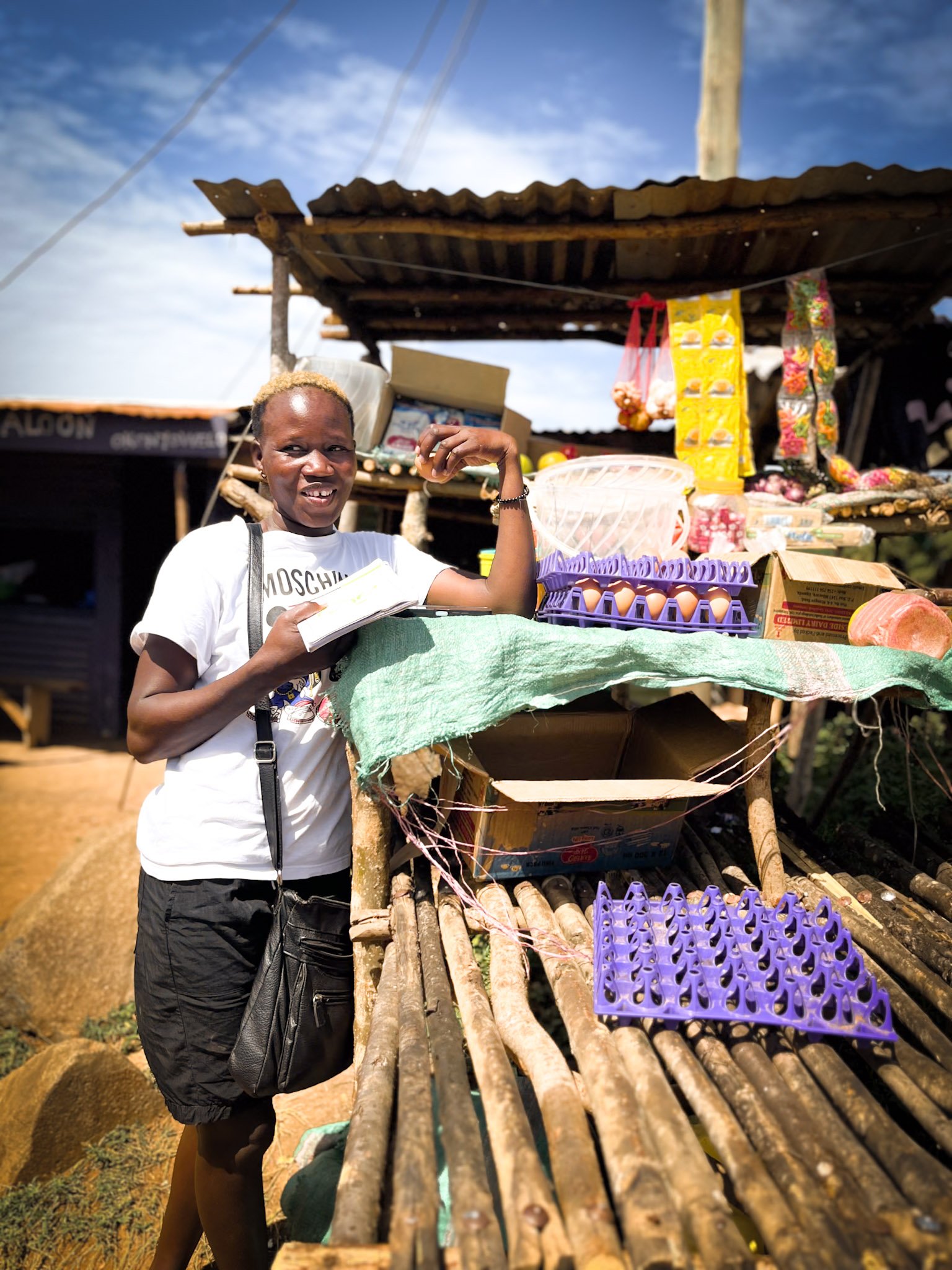 This is the payout from their savings group, money earned through a year of hard work and immense discipline. For Dotea, this moment is the culmination of a journey that began with a single $70 loan in May. She used that capital to trade in oil and sugar, repaying the principal by June and expanding her inventory ever since.
